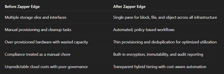 Zapper Edge doesn’t just end storage headaches—it unleashes your IT team to lead innovation, reduce costs, and scale with confidence.