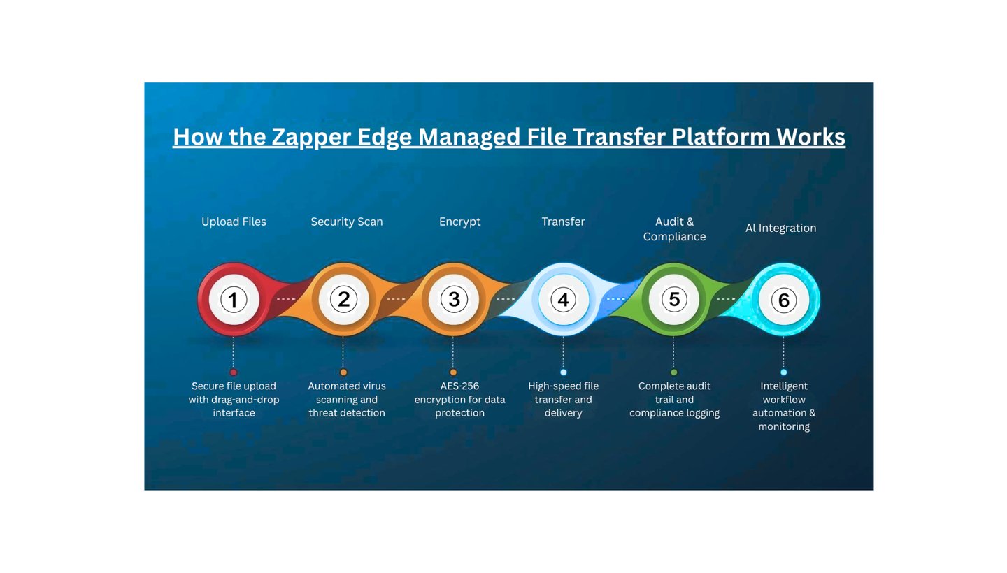 Zapper Edge Managed File Transfer (MFT) Platform is a secure, cloud-native solution designed to simplify and automate large-scale file transfers across enterprises. It ensures complete data security, end-to-end encryption, and compliance with global standards like SOC 2, HIPAA, PCI DSS, and GDPR. Built for modern IT environments, Zapper Edge allows organizations to transfer sensitive data seamlessly within their own cloud infrastructure—ensuring no data ever leaves their environment. With built-in automation, audit trails, and real-time monitoring, Zapper Edge delivers a reliable, efficient, and compliant way to exchange critical business data.