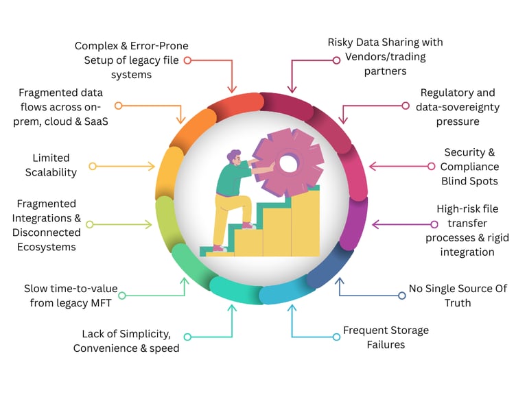 Fragmented Integrations And Disconnected Ecosystems: Enterprises rely on multiple tools, custom scripts, and partner gateways to move files between systems. This fragmented approach leads to data silos, visibility gaps, and inconsistent governance — the very opposite of digital transformation.
