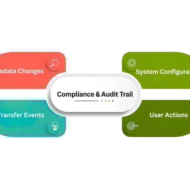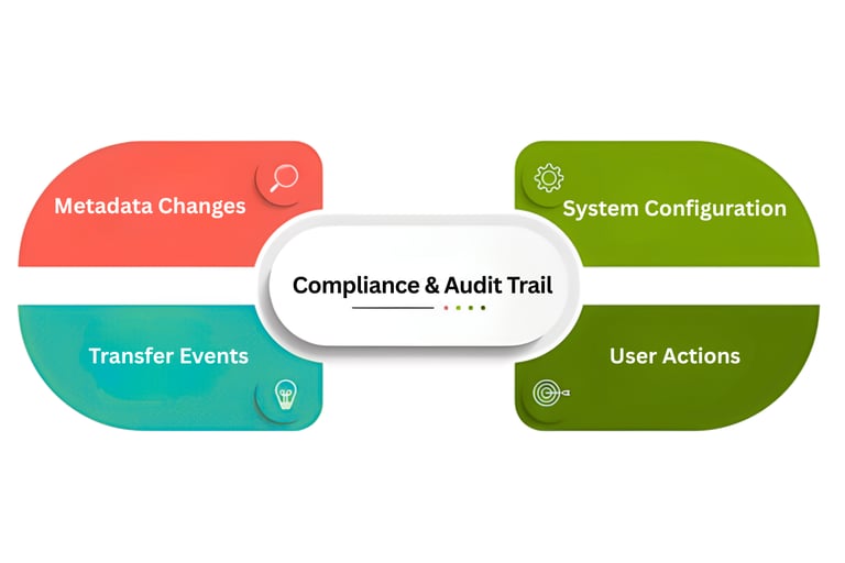 Transfer events, user actions, metadata changes and system configuration are recorded in tamper-resistant logs with built-in retention and export. These logs can be provided as part of compliance evidence.