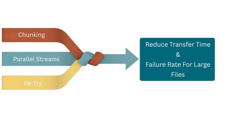 By leveraging chunking, parallel streams, and intelligent retry mechanisms, files are transmitted in smaller segments at a great speed and reliability. The architecture minimizes the impact of network fluctuations, ensuring a continuous and uninterrupted data flow. As a result, organizations experience significantly reduced transfer times and lower failure rates, enabling seamless and scalable file delivery.