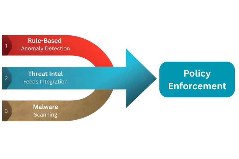 At the core of a strong security framework is a layered defense strategy. Our approach begins with Rule-Based Anomaly Detection, which continuously monitors activity to identify unusual patterns and suspicious behavior. By combining these layers into a single, streamlined enforcement engine, we deliver strong, consistent, and proactive protection—keeping your data secure and resilient against evolving threats.